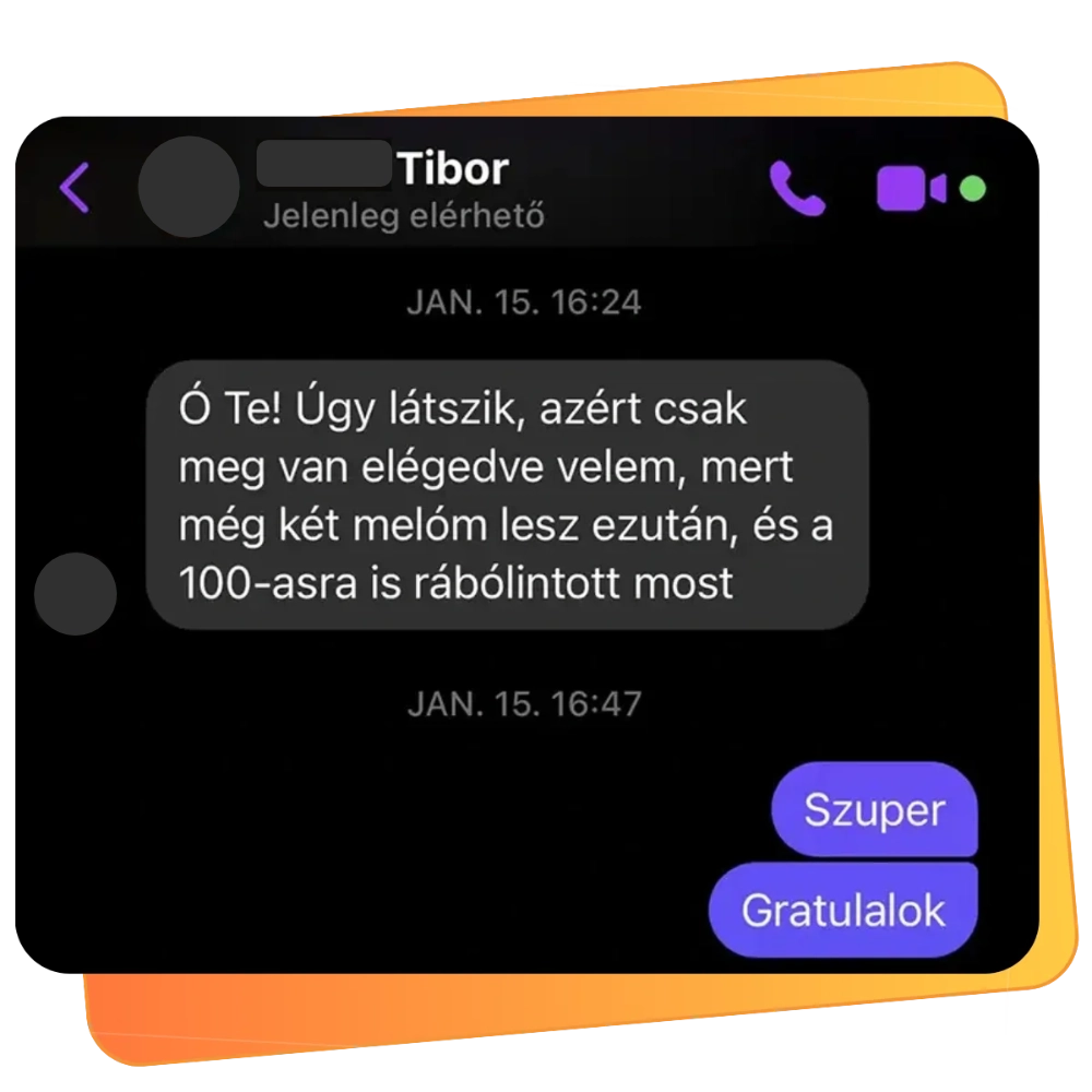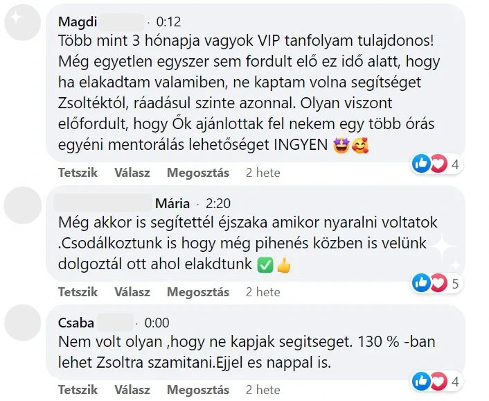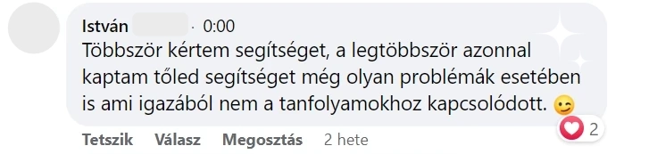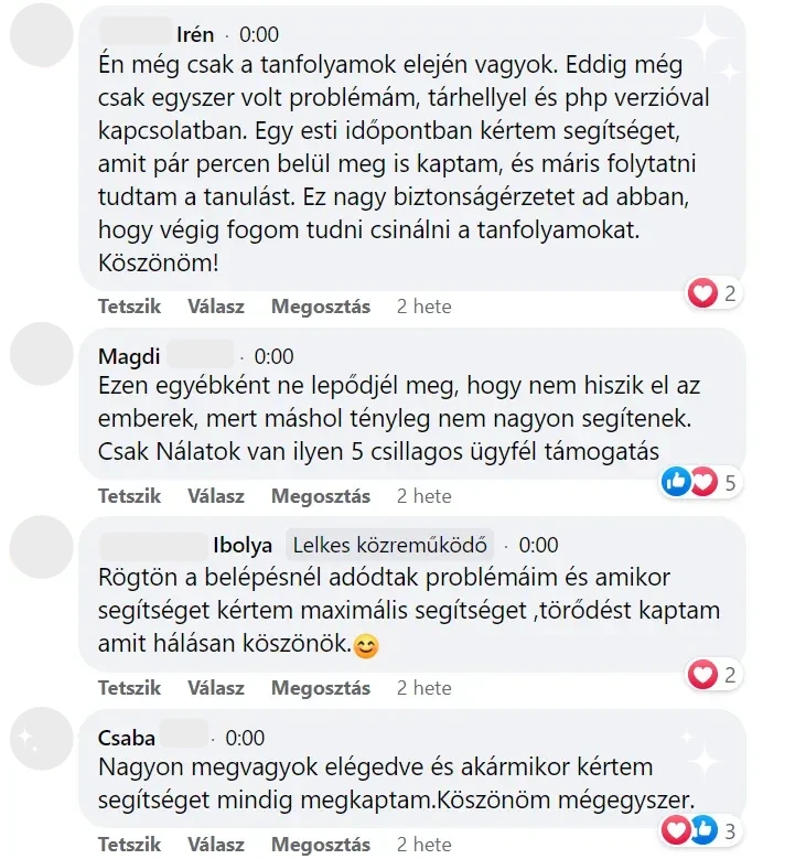 - 100%-ban biztosak vagyunk a dolgunkban, tudjuk, hogy amit létrehoztunk az tanulható és a tanultakat, a gyakorlatban alkalmazhatják, akik elvégzik a tanfolyamot.